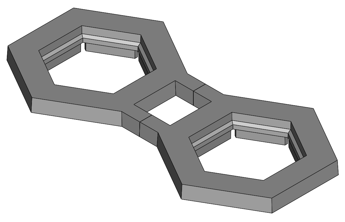 Double tie TowersA stack of 6 unit pillars can become a little wobbly (technical term, that) and a run of such also uses up a lot of pillars very quickly. A 3D 6-unit tower replaces 6 pillars, and can also have an opening for a track piece to pass through.