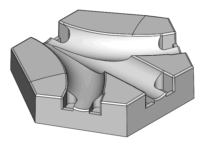1-unit plate with two 120° curves, 1.5-unit slope merge plate with straight and two 120° curves "Skytrax"Ravensburger seem to be struggling with marketing their most recent Gravitrax development which they are calling "Gravitrax Skytrax", located in the "Games" section (!) of their UK web site. Skytrax plates are double-unit items which stack on each other, a combination of plate and pillar. Skytrax has its own half-unit 5 mm "pillar" part which is needed when stacking with a standard Gravitrax plate. Here is a clone of the Skytrax pillar/plate and of the double-unit Skytrax merge with straight and two 120° curves.