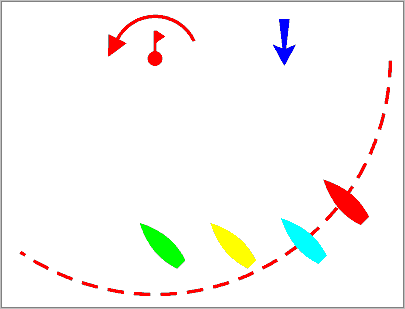 and Yellow tack to port and sail over to the starboard tack layline.