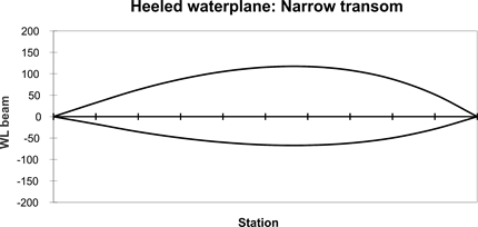 of heeled narrow transom hull.