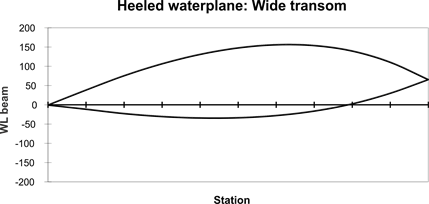 markedly beamy hull and when heeled generates a pronounced asymmetric waterplane.