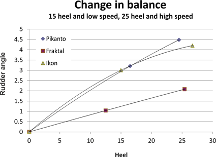 slightly less rudder than Pikanto when heeled at around 25 degrees, this