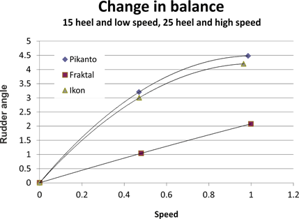 their yaw moment lessens with higher speed and heel. The yaw moment of Fraktal